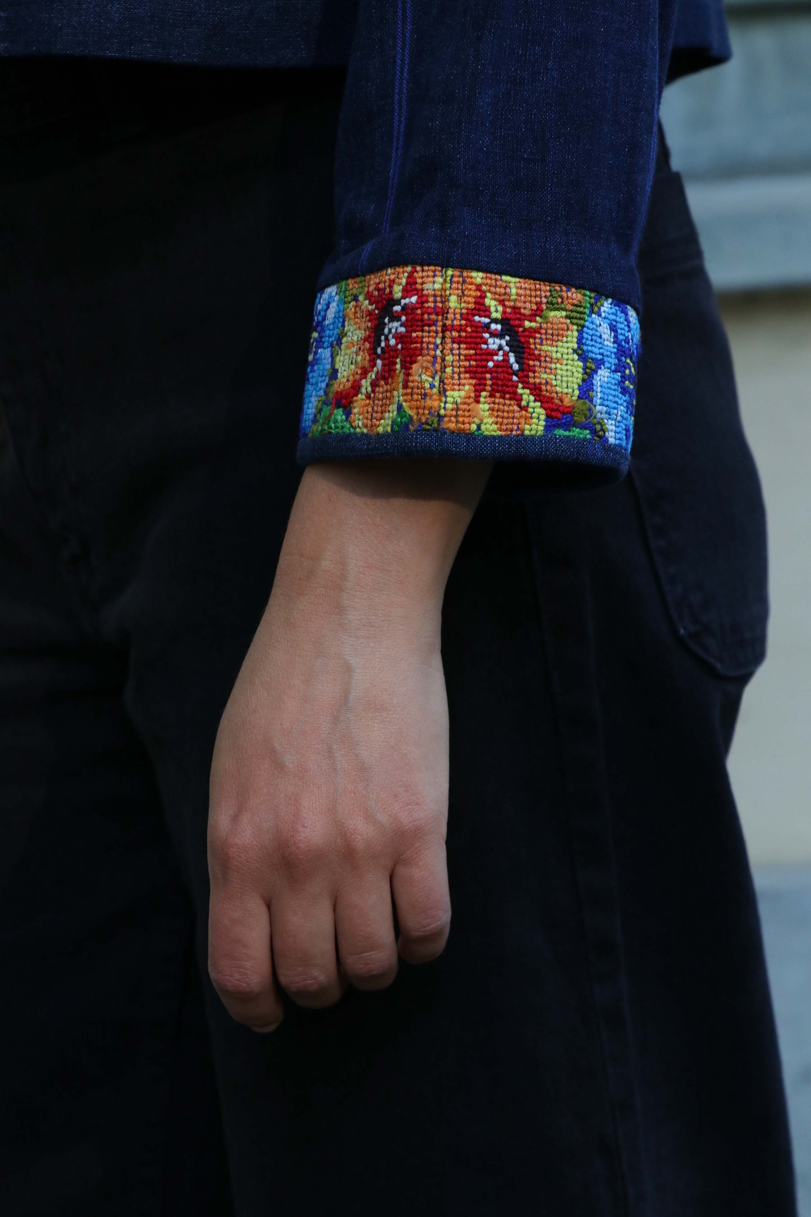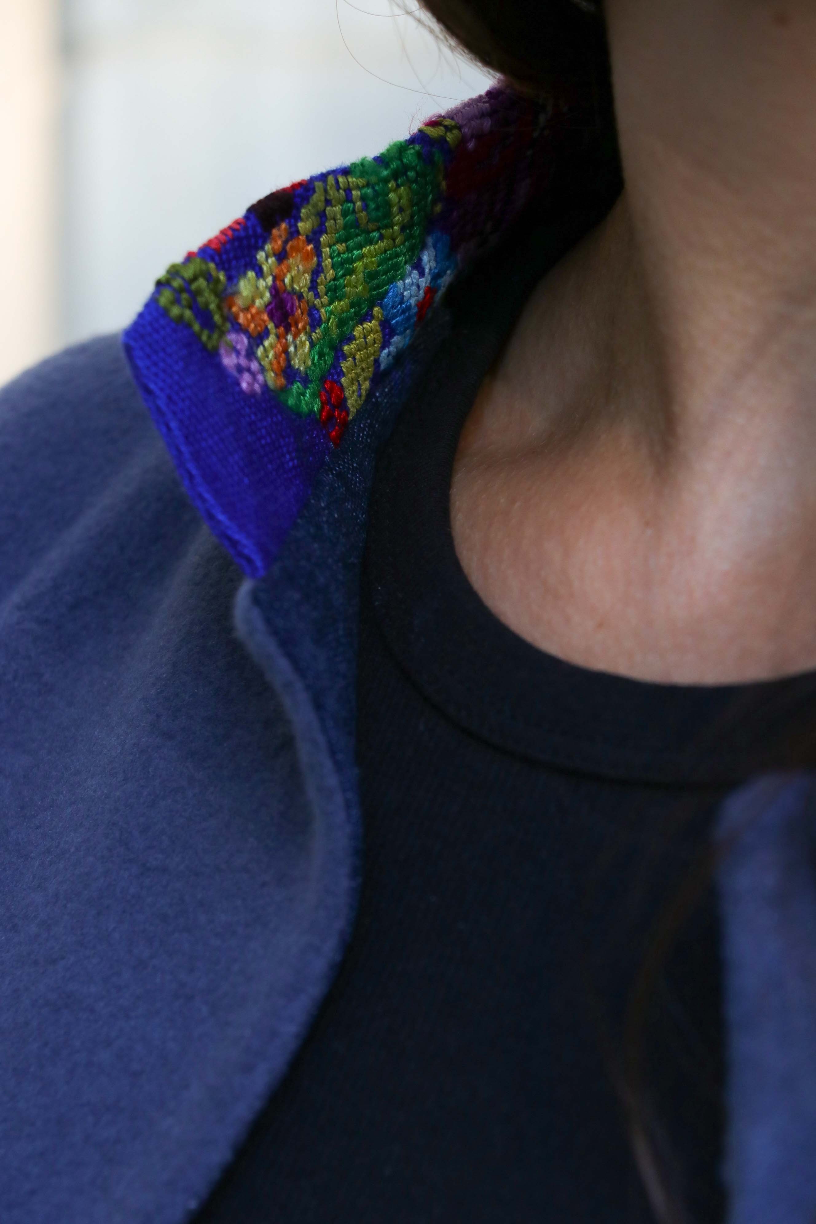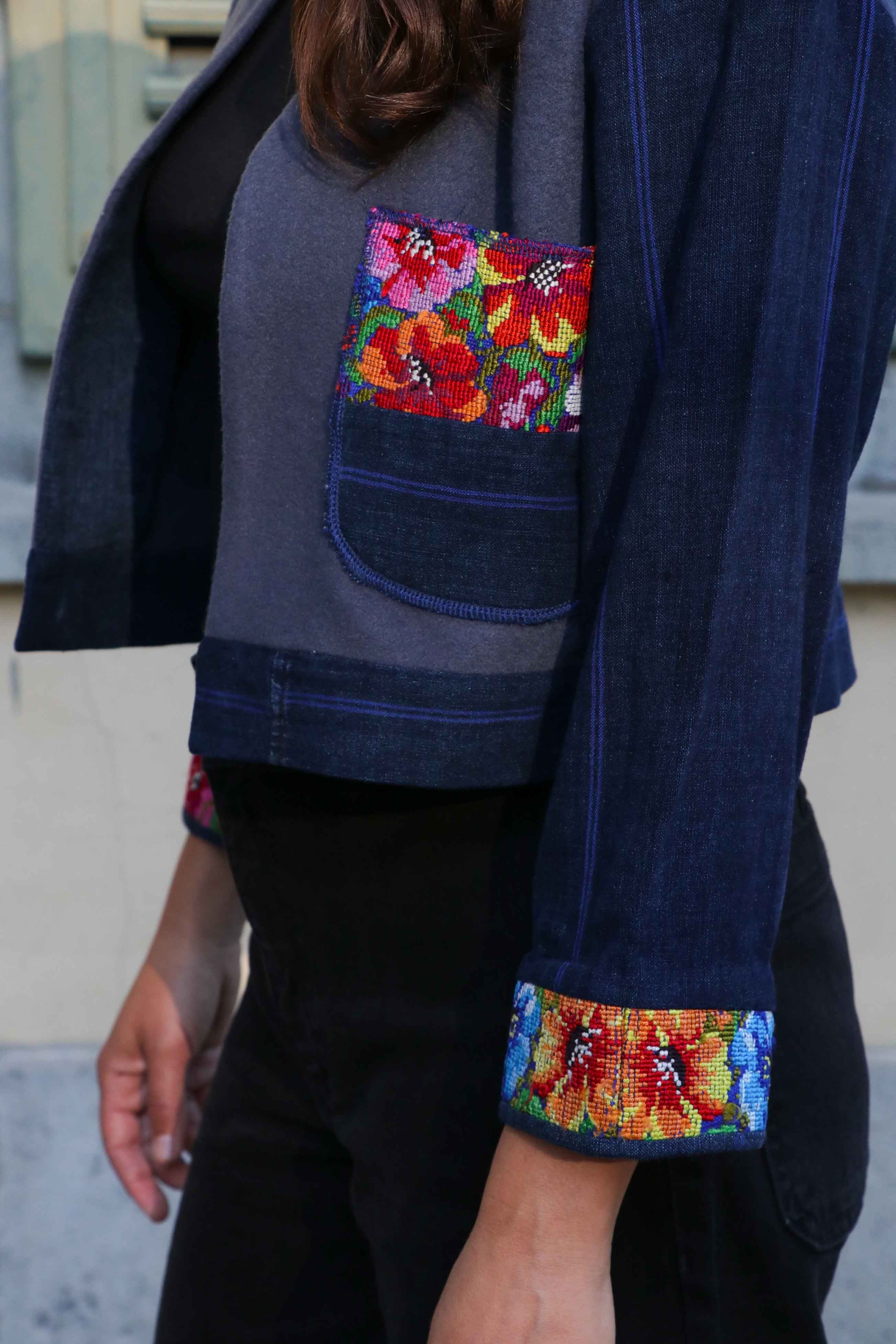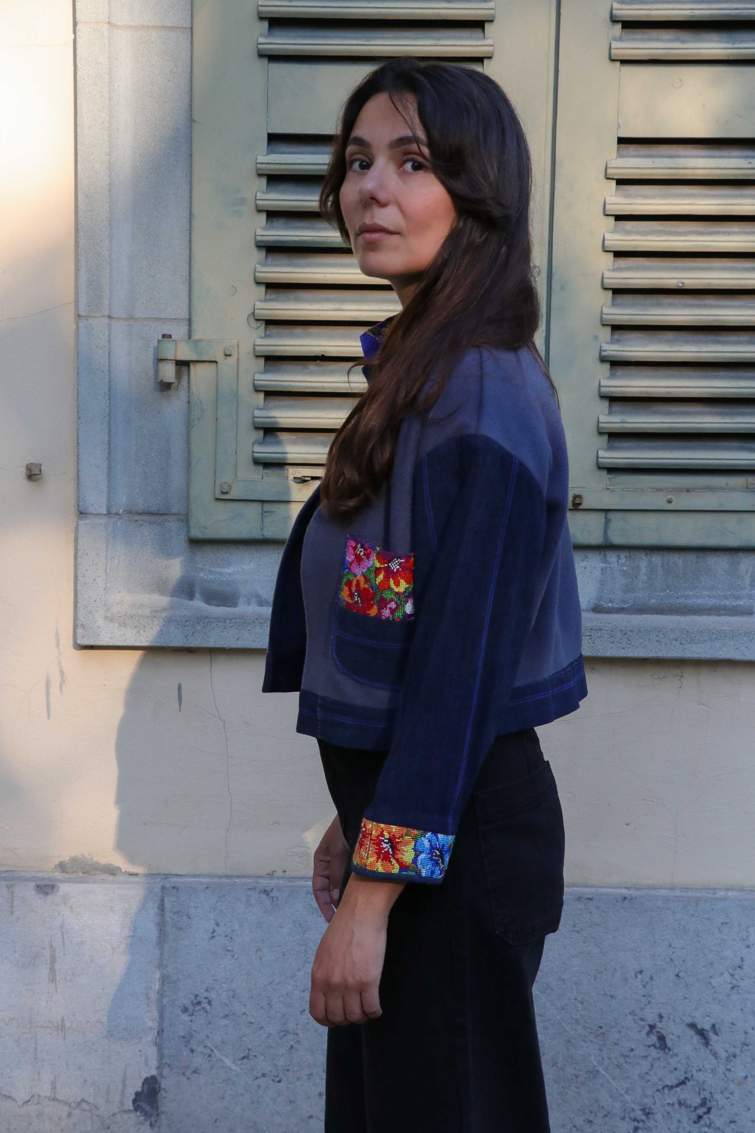 Veste d’exception taille S en coton et mohair 100% upcyclée réalisée à la main en Suisse par l’une de nos stylistes féminines partenaires, originaire de Syrie. Histoire de la création : Cette veste est issue d’une robe traditionnelle guatémaltèque ramenée dans une valise, longtemps oubliée dans une armoire, souvenir précieux de voyage. L’objectif était de préserver la poésie et la beauté des broderies si uniques, tout en transformant ce tissu en une veste d’entre-saison, pensée pour un usage quotidien. C’est grâce au savoir-faire et à l’inspiration de notre styliste et de Sarah la créatrice que cette pièce prend vie, offrant une seconde épopée élégante à ce trésor textile chargé d’histoire.
