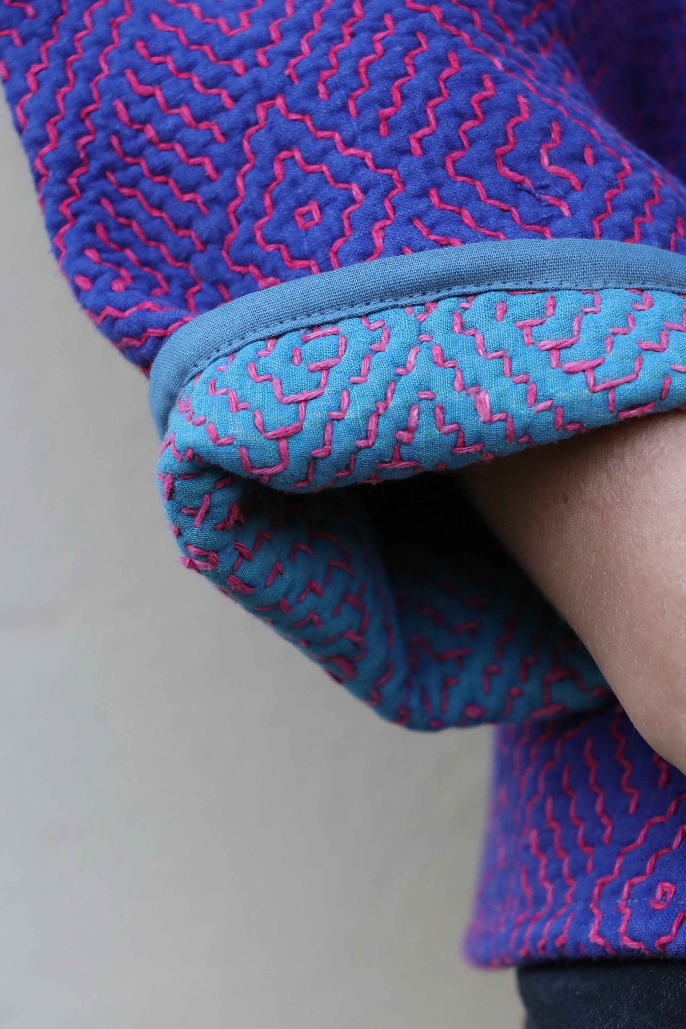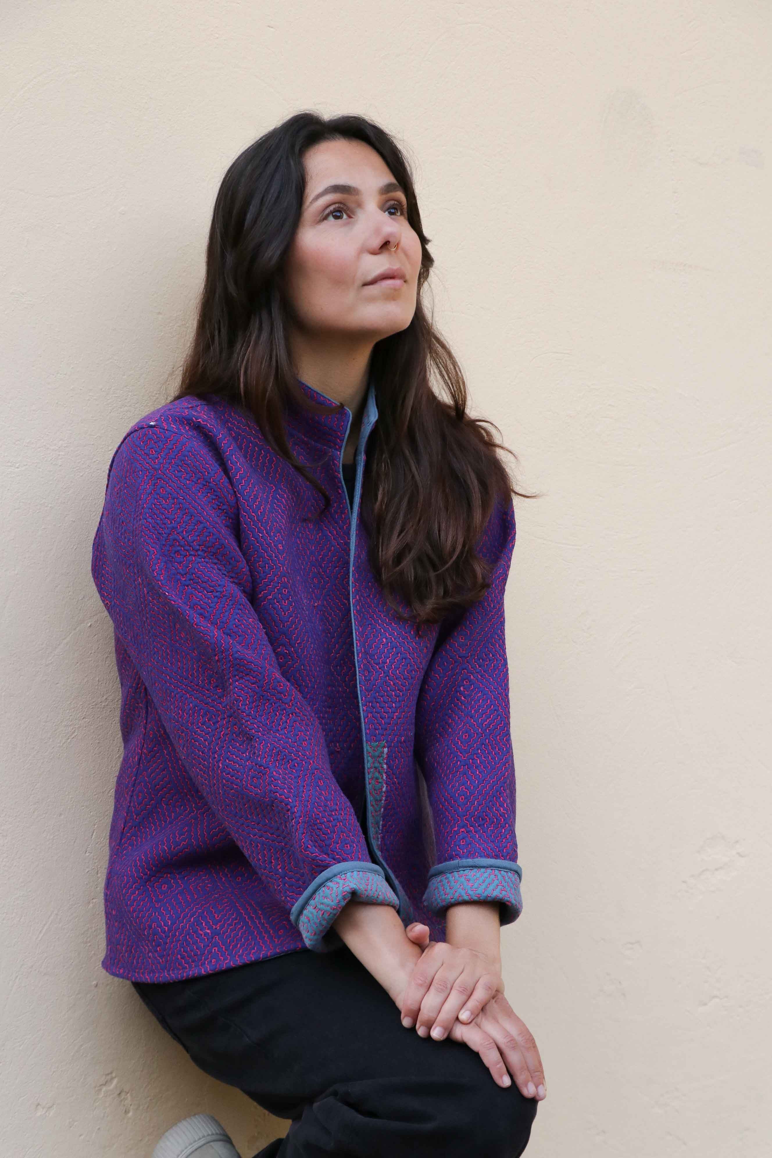 Veste d'exception réalisée avec des tapis upcyclés du nord de l'Inde disponible en taille M/L