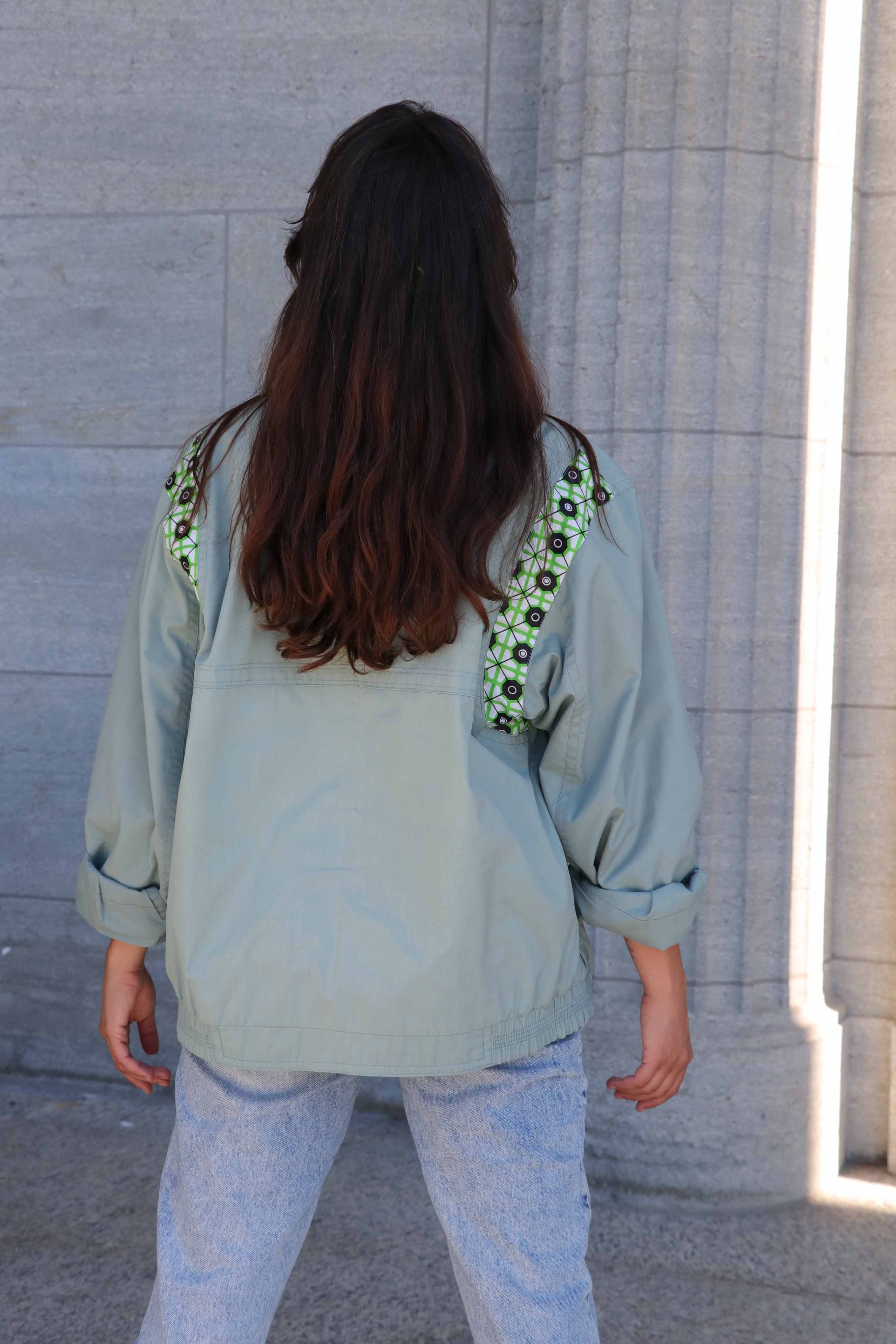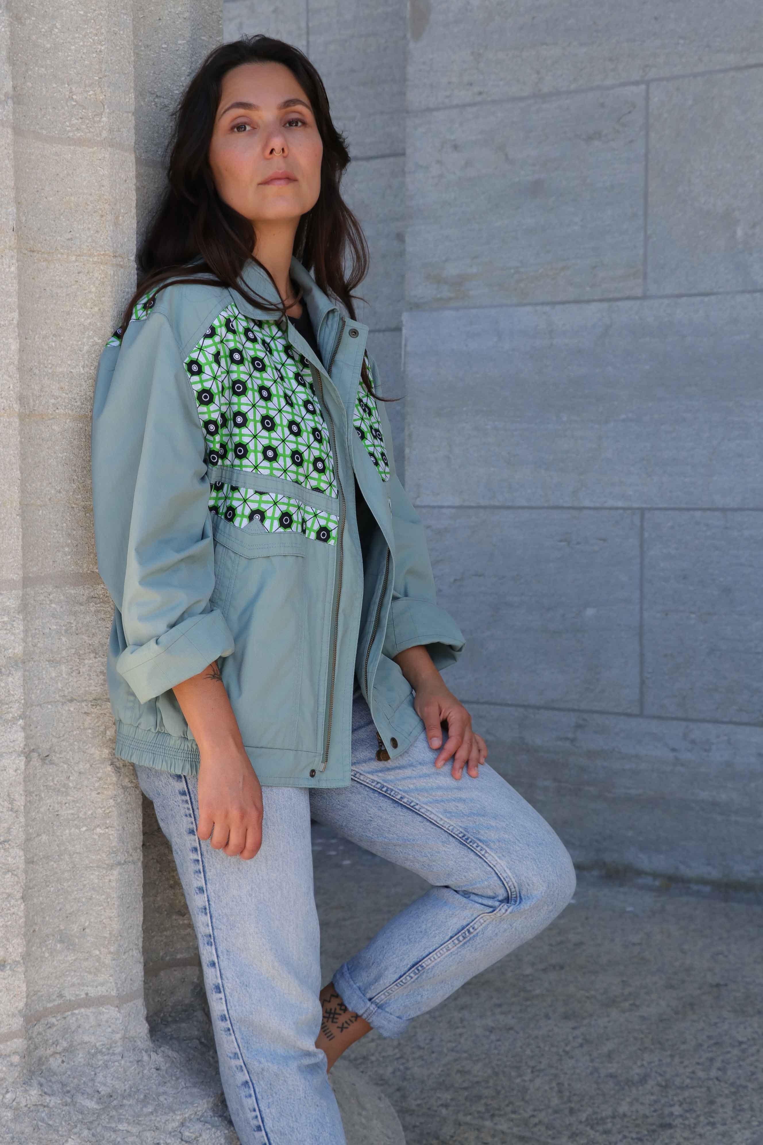 histoire de la création: elle raconte une histoire de rencontres, de passion et de création engagée. Chinée par Sarah Morier, fondatrice d’Irni Company, dans une friperie parisienne, elle a été transformée en pièce d’art textile grâce à l’intervention du styliste Kabi Fati. Le wax upcyclé, soigneusement sélectionné et intégré à la main, apporte une touche vibrante et identitaire à cette pièce vintage.